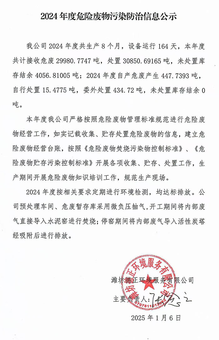 2024年度危险废物污染防治信息公示