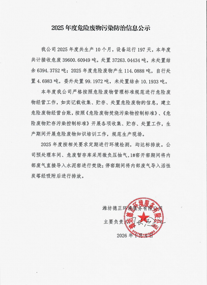2025年度危险废物污染防治信息公示